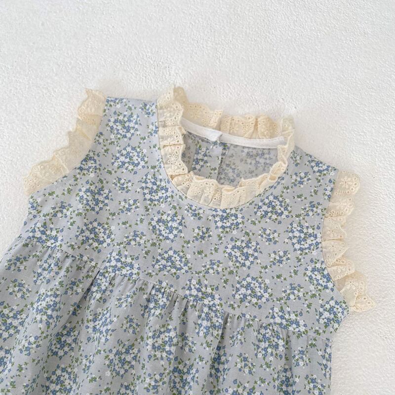 2024夏新作 ベビー服 女の子 ノースリーブ レース襟 ロンパース おしゃれ 子供服 可愛い 花柄