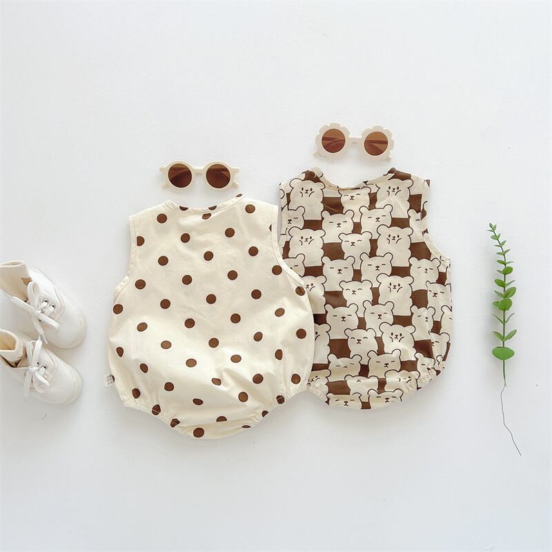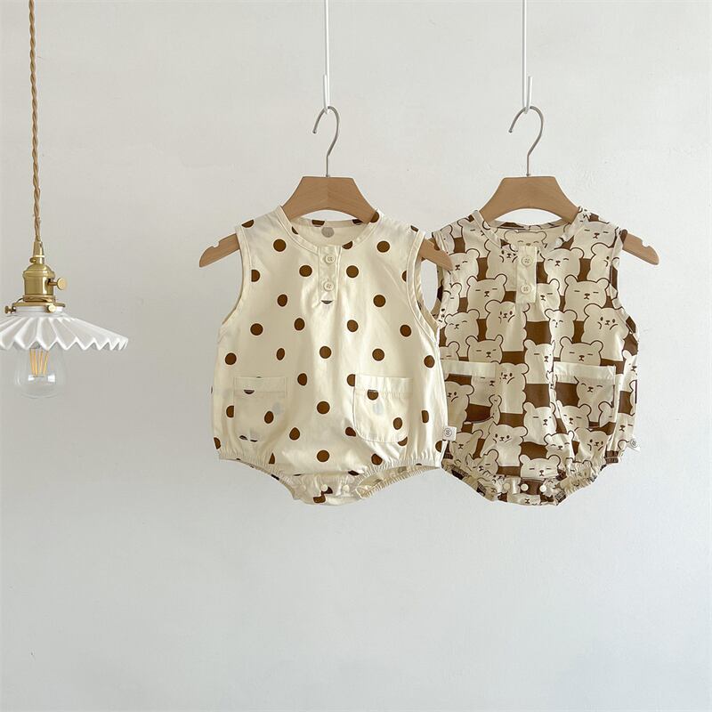 2024夏新作 ベビー服 ノースリーブ ロンパース ドット柄 クマ 可愛い カバーオール 子供服