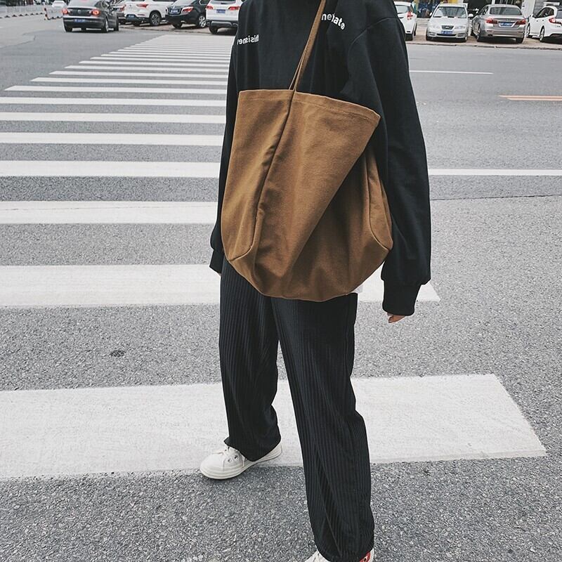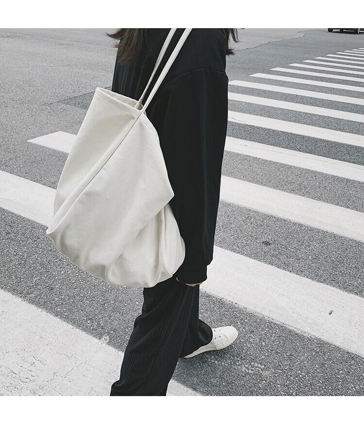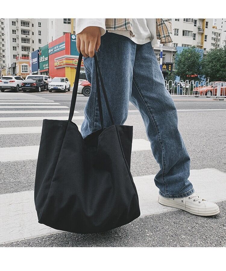 2024新作 エコバッグ トート ショルダー シンプル 無地 キャンバス 帆布 大容量 肩掛け マチが広い