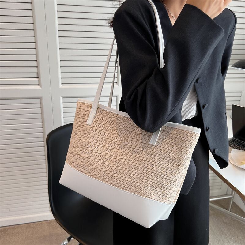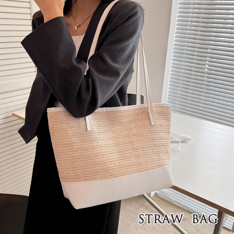 2024新作 トートバッグ 麦わら風 かご風 ストローバッグ ナチュラル かわいい 大容量 軽い 夏バッグ