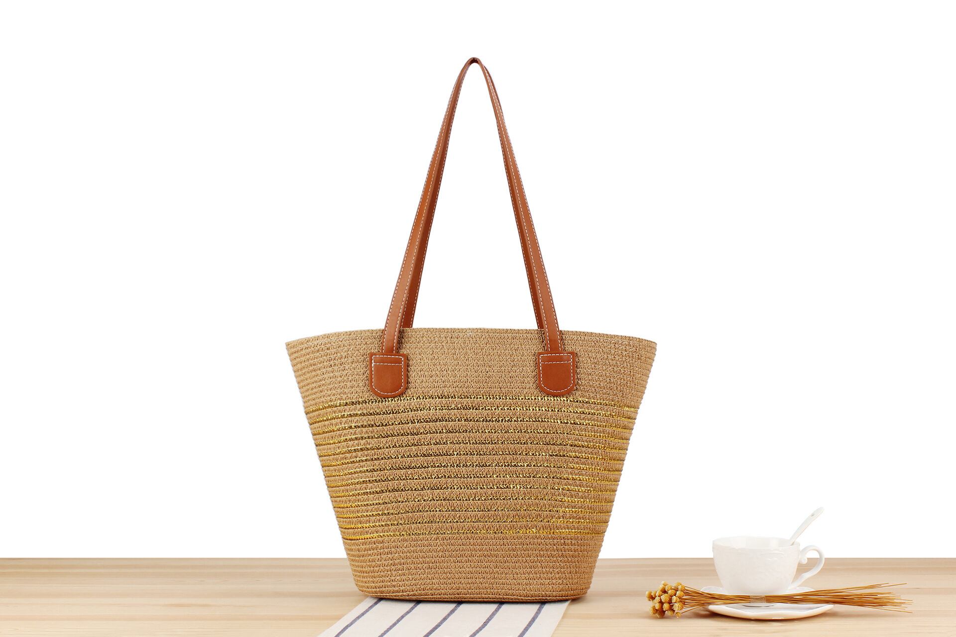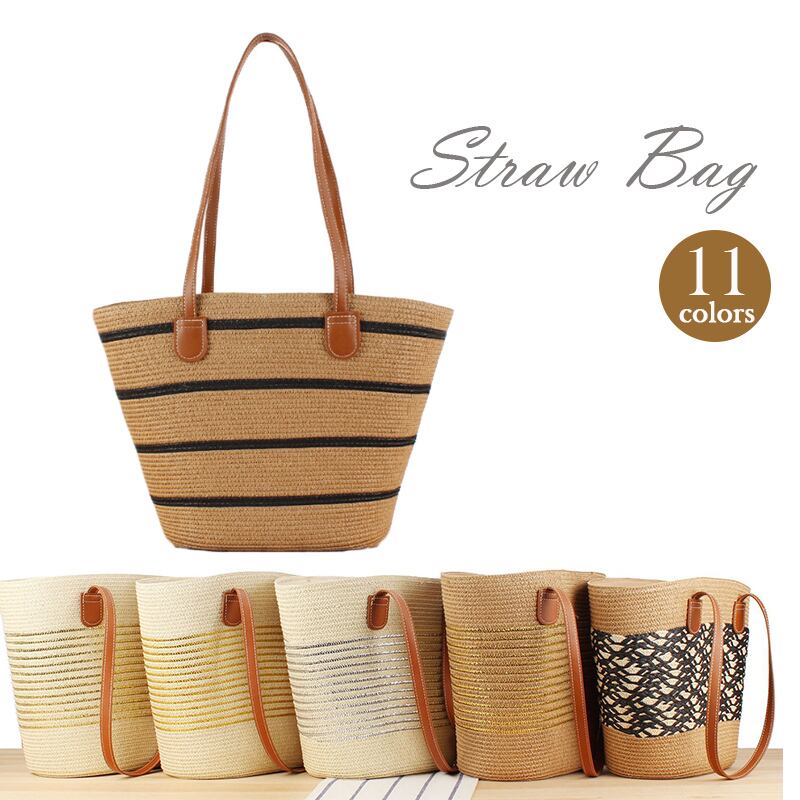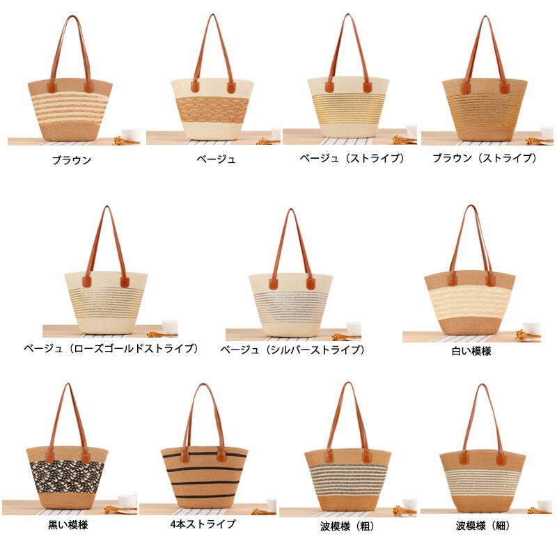 2024 レディース 麦わら風 かご風 ストローバッグ ナチュラル かわいい 大容量 軽い 夏バッグ ストライプ