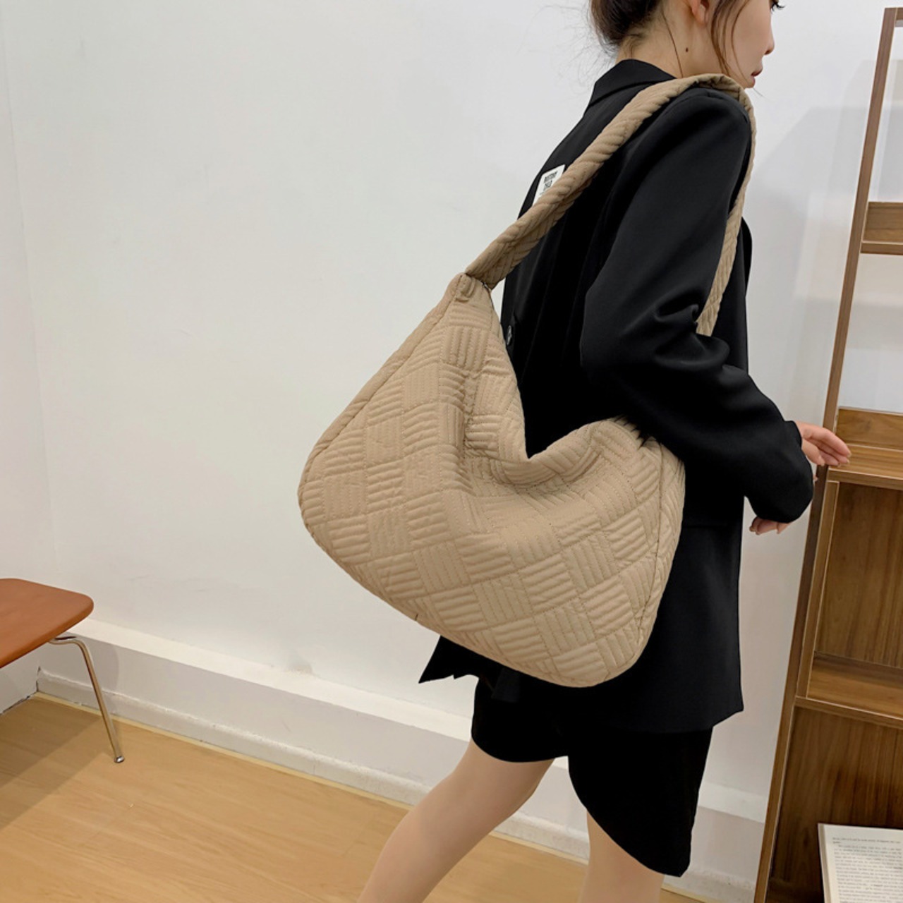 ・ソフトで軽いキルティングトートバッグ。